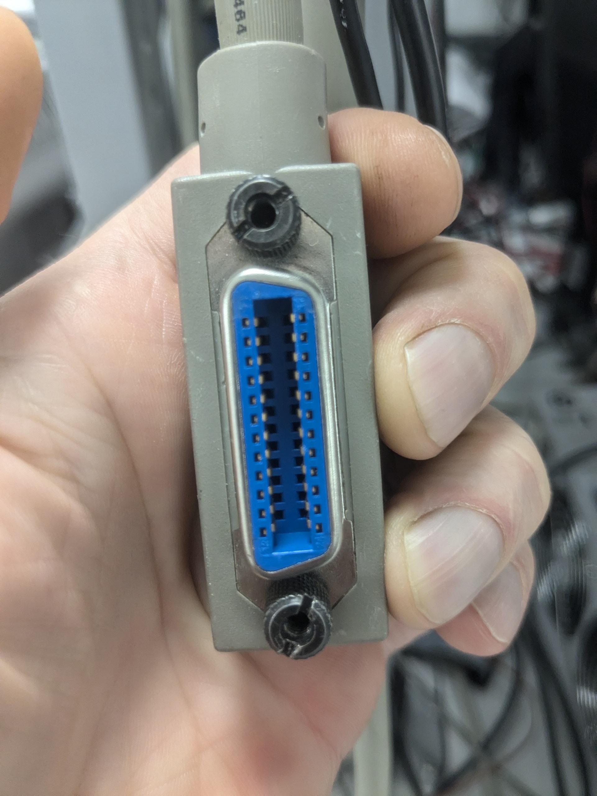 @jonty @cstross I'd suggest IBM bus and tag cables, from their older mainframes: https://upload.wikimedia.org/wikipedia/commons/c/ca/IBM_360_Bus_Tag_Cables.png. Note that the connectors are about 10 cm long — and you needed two to connect to each I/O device…